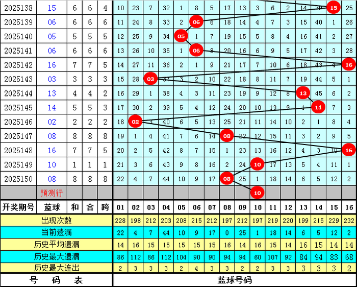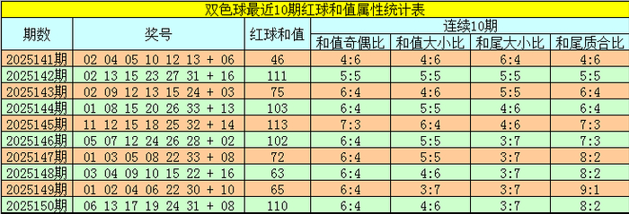 和值跨度分析:上期和值开出110,对比第2025149期和值上升了45个点位,本期预计和值在大号区域热出,看好出现在114附近。